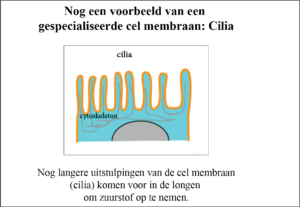 In andere cellen treden veel langere vingerachtige projecties op van het plasmamembraan. Deze worden cilia genoemd en worden ondersteund door het cytoskelet. Ze komen bijvoorbeeld voor in de luchtwegen (= de longen).
