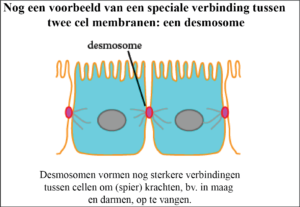 Desmosomen vormen nog sterkere verbindingen tussen aangrenzende cellen, wanneer sterkere krachten betrokken moeten worden (bijvoorbeeld in de maag en het darmstelsel).