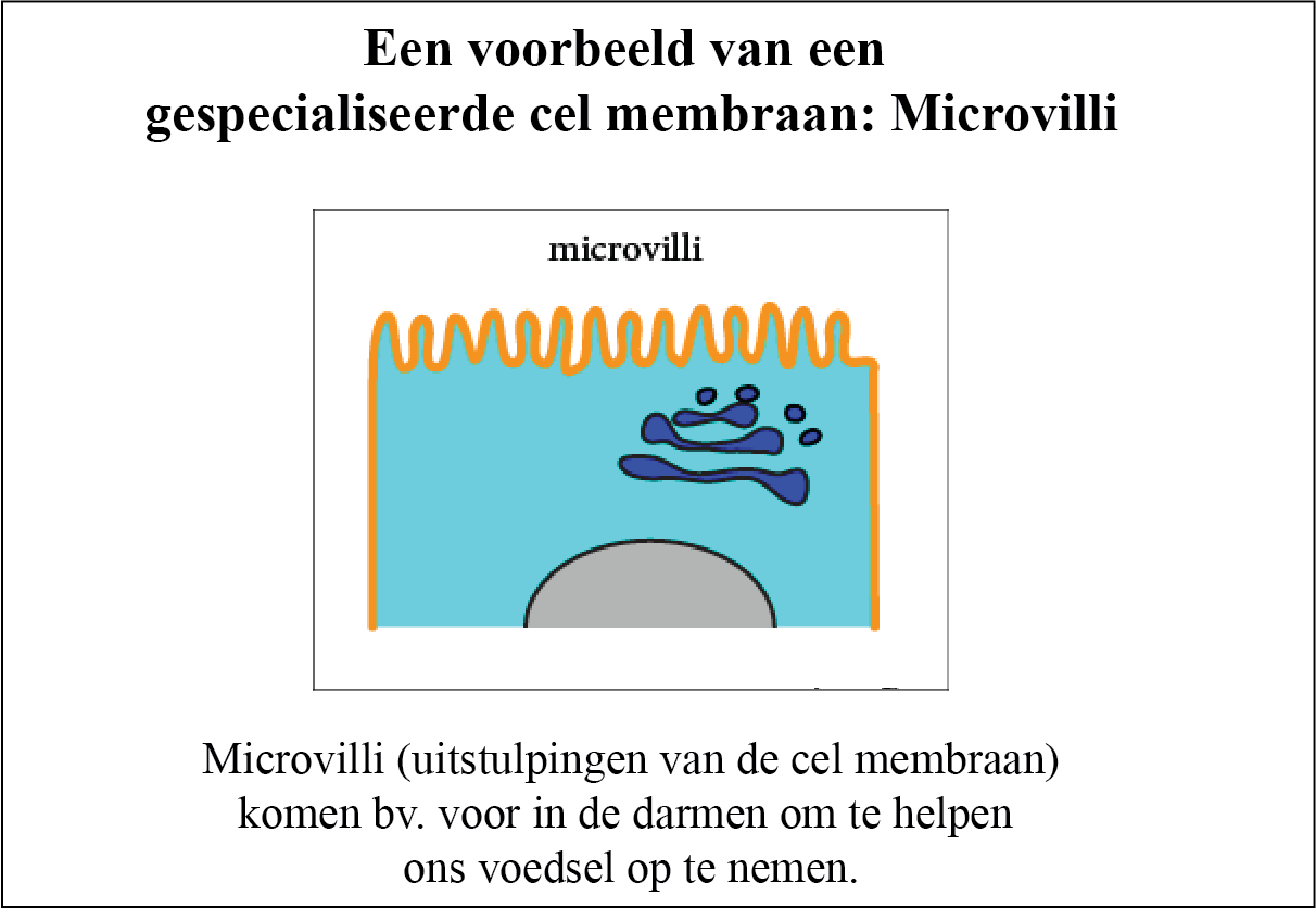 In cellen die de darmen bekleden, vertoont het plasmamembraan bijvoorbeeld verschillende vouwen (microvilli) die zich uitstrekken tot in het darmlumen (ruimte).