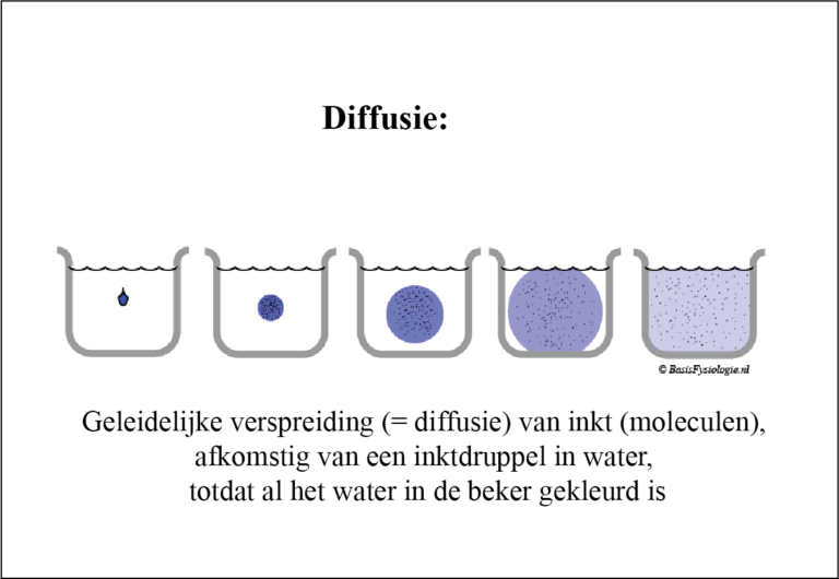 Diffusie is het proces waarbij iets oplosbaar dat in water wordt geplaatst ‘automatisch’ wordt verdeeld, opgelost, in dat water.