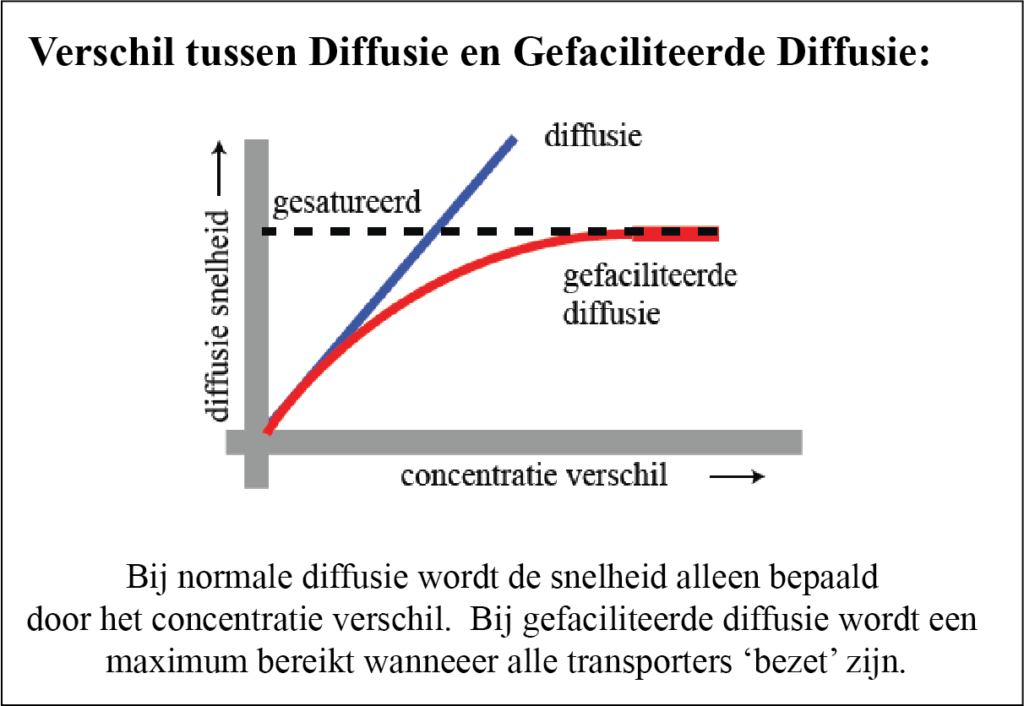 Bij normale diffusie is er geen verzadiging en kan het proces zo lang mogelijk doorgaan, zolang er een concentratiegradiënt is.