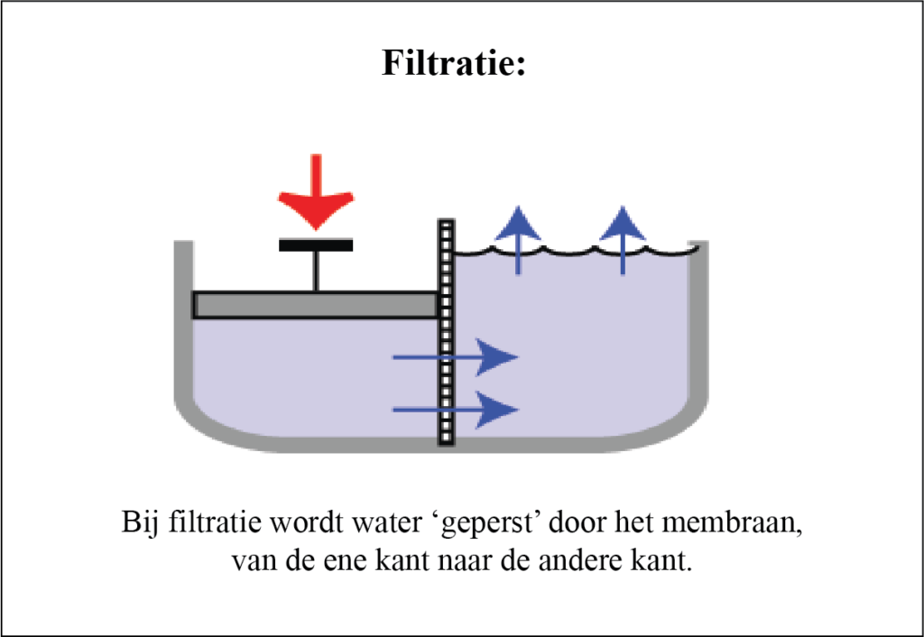 Bij filtratie is er in eerste instantie een drukverschil tussen de ene kant van de membraan en de andere kant.