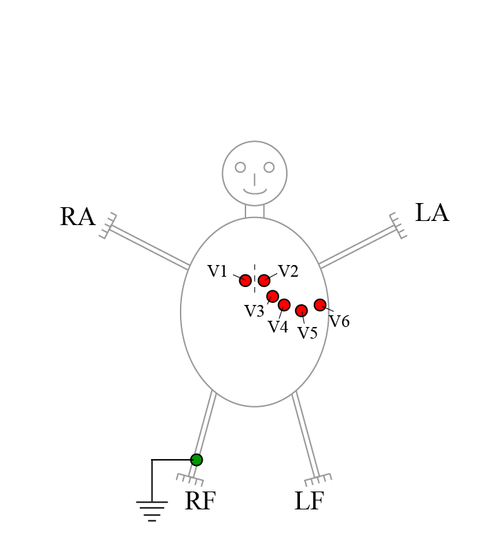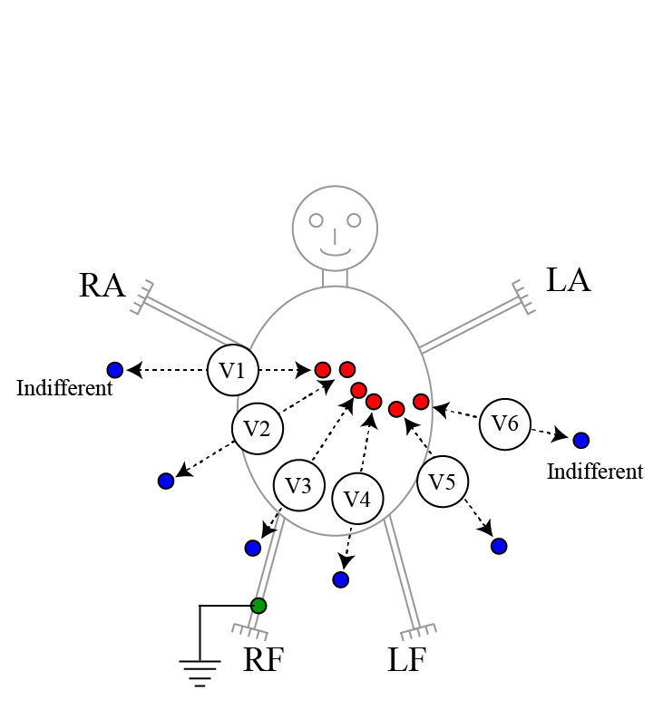 De oplossing is om de negatieve pool aan te sluiten op een indifferente elektrode. Dit is eigenlijk een referentie-elektrode. Het is verbonden met alle ledematen samen.