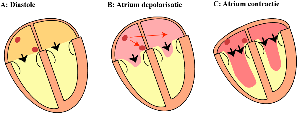Deze depolarisatie zal een samentrekking van beide boezems op gang brengen die nog meer bloed in de ventrikels zal ‘duwen’. Dit is het begin van de cardiale systole.
