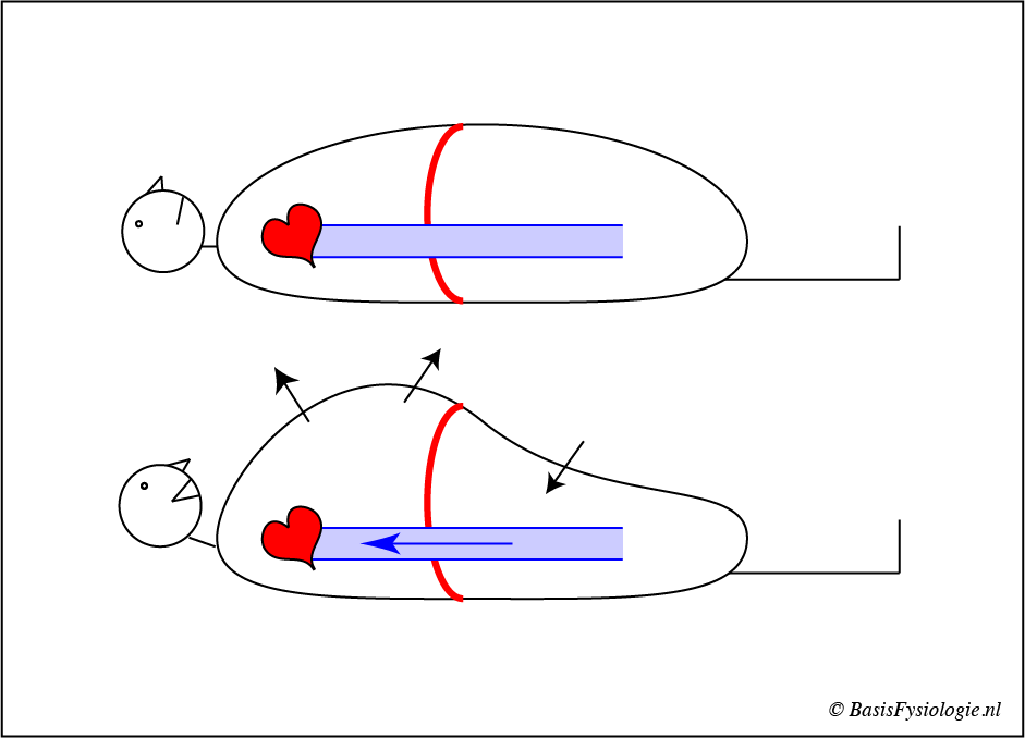 Wanneer een persoon inademt, wordt de druk in de borstkas lager (wordt negatiever). Dan is de druk in de borst lager dan in de buik. Dit veroorzaakt een bloedstroom in de grote buik vene (vena cava inferior) richting de borst.