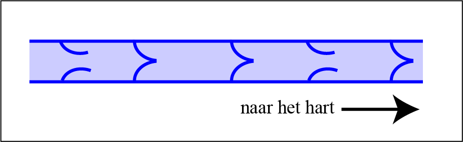 In het arteriële stelsel bevindt zich een pomp (het hart) die het bloed door alle arteriën naar de capillairen pompt. Er is echter geen “veneuze pomp” in het veneuze systeem om het bloed terug naar het hart te pompen.